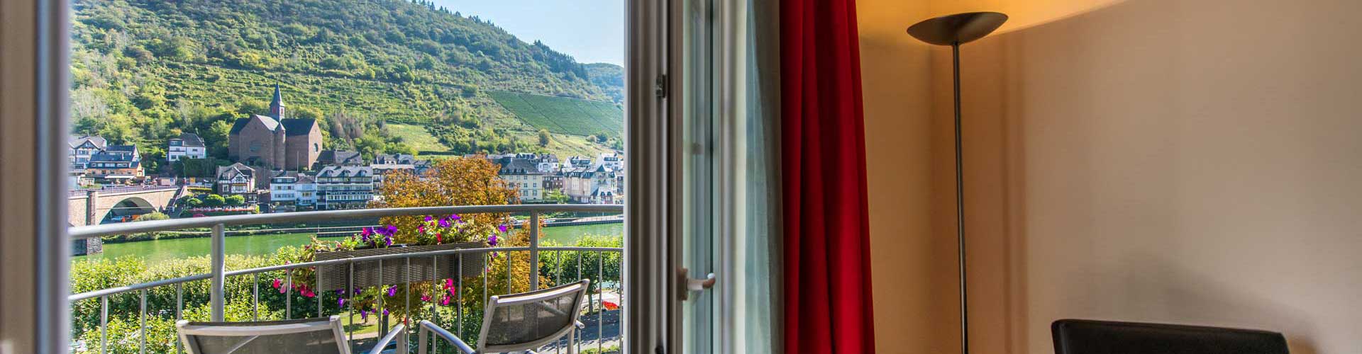 Entscheide Dich für ein Zimmer mit wunderschönem Blick über die romantische Altstadt von Cochem oder für ein Zimmer zur Mosel.